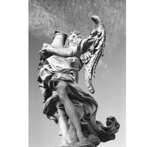 Adorned with ten stone angels, Ponte Sant'Angelo Bridge in Rome is larger than life. The angels with animated facial expressions, evoke a sense of tranquility. Exquisite craftsmanship and attention to detail has transformed milk-white stone into flowing fabric.